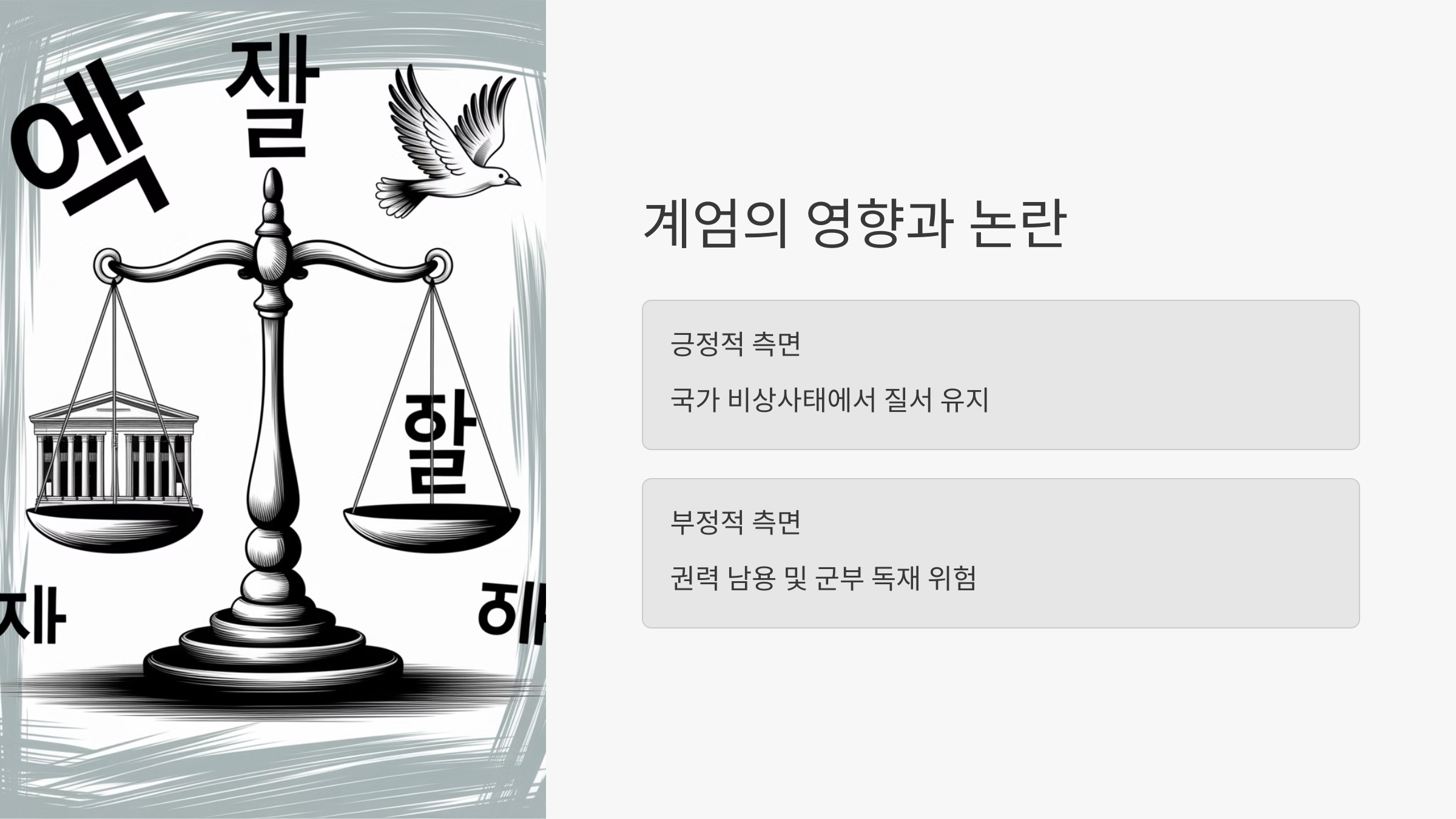 - 부정적 측면: 권력 남용 및 군부 독재의 수단으로 악용될 위험 존재.
