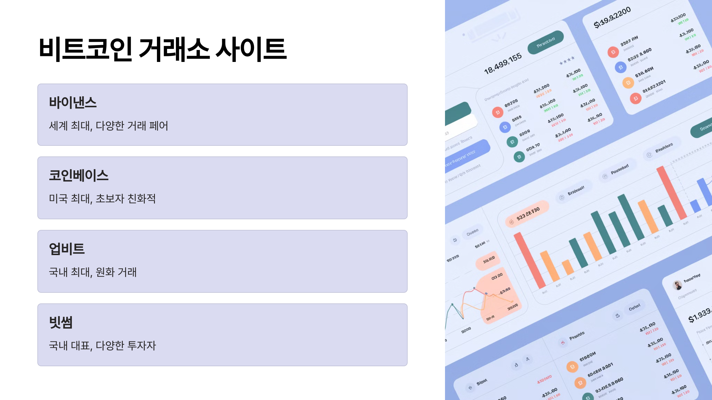 | 코인베이스(Coinbase) | 미국 최대 거래소, 초보자 친화적 인터페이스. | https://www.coinbase.com |