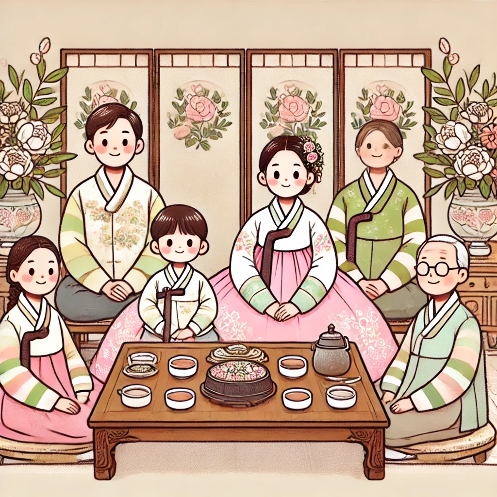- 문 입구에서 먼 쪽이 상석이므로 어른들이 앉도록 합니다.