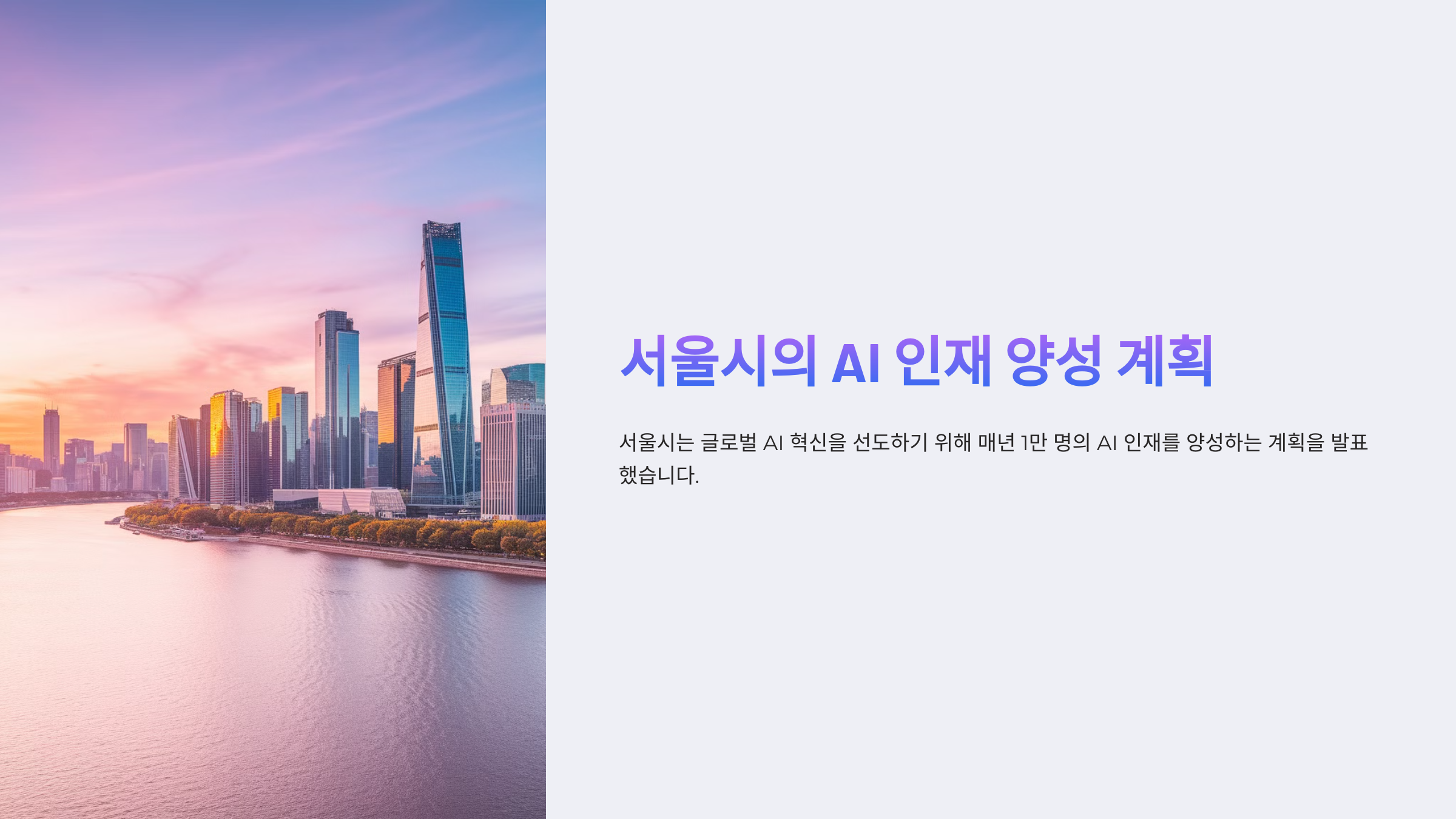 서울시는 글로벌 인공지능(AI) 혁신을 선도하기 위해 매년 1만 명의 AI 인재를 양성하는 계획을 발표했습니다. 이를 통해 AI 산업의 발전과 전문 인력 수요에 대응하고자 합니다.