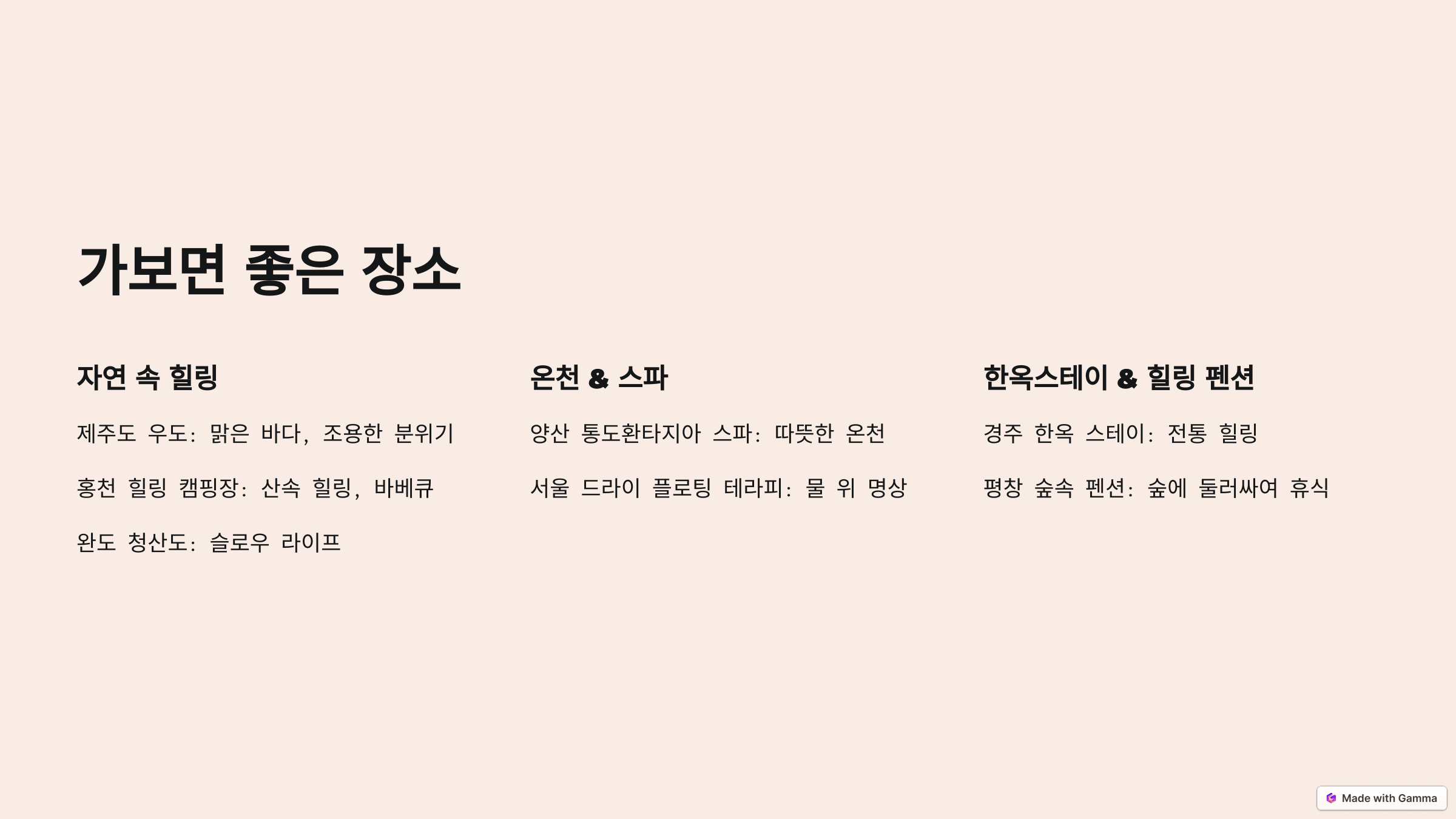2. 가보면 좋은 장소 (힐링 여행지 추천)