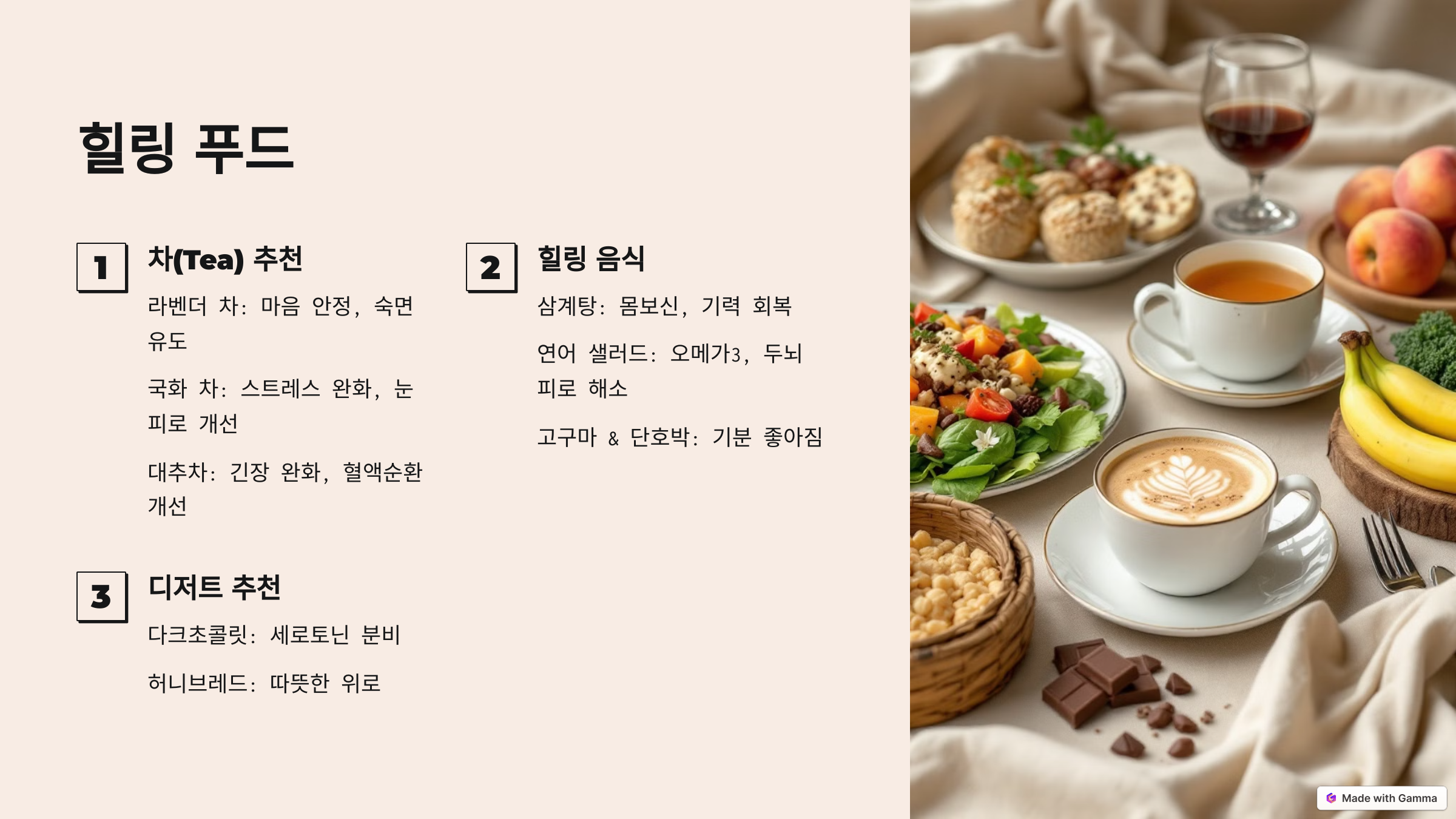 3. 힐링 푸드 (피로회복 & 스트레스 완화 음식)