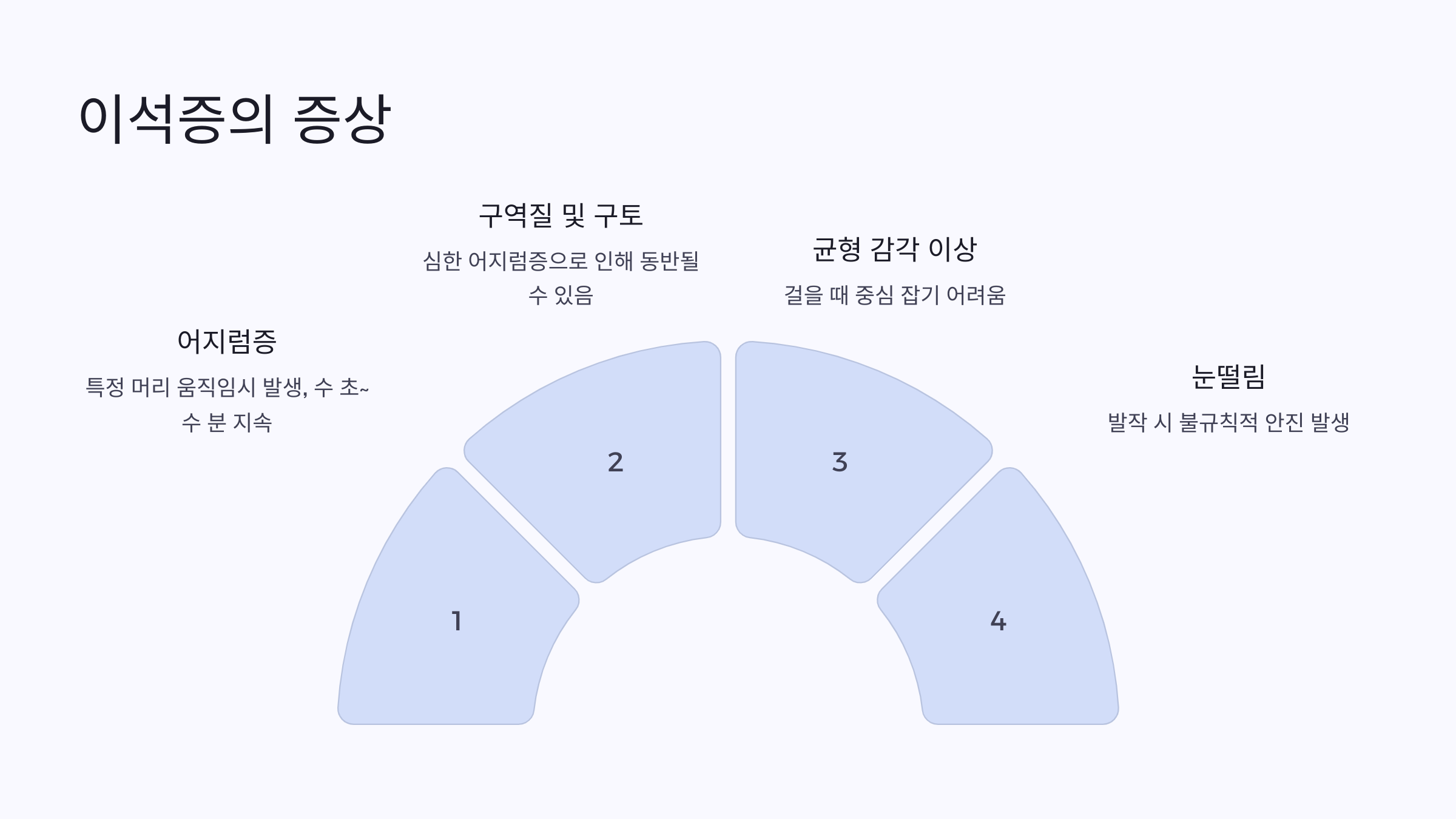 이석증의 대표적인 증상은 특정한 머리 움직임으로 인해 발생하는 어지럼증입니다.