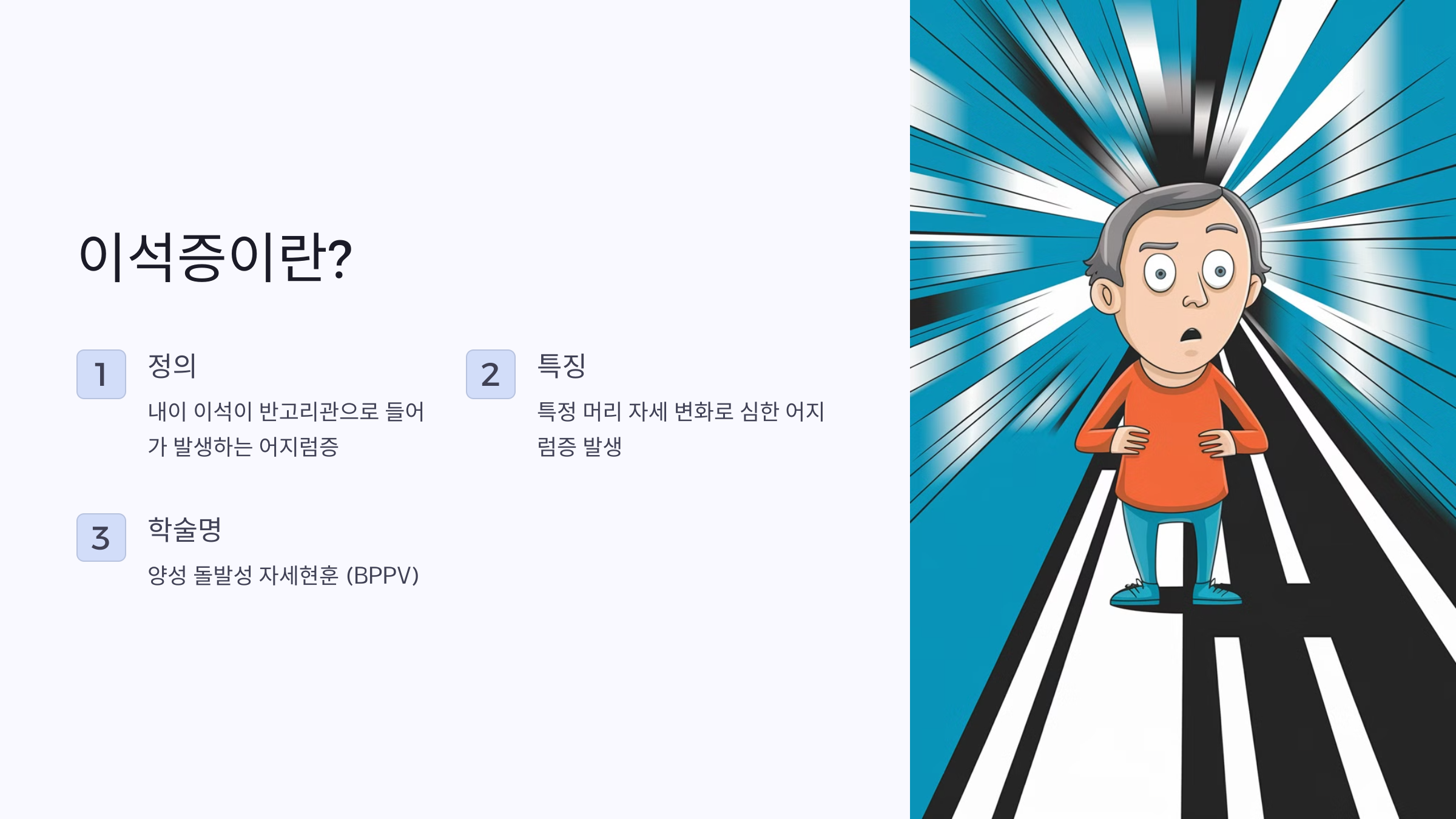 이석증(양성 돌발성 자세현훈, BPPV)에 대한 자세한 설명