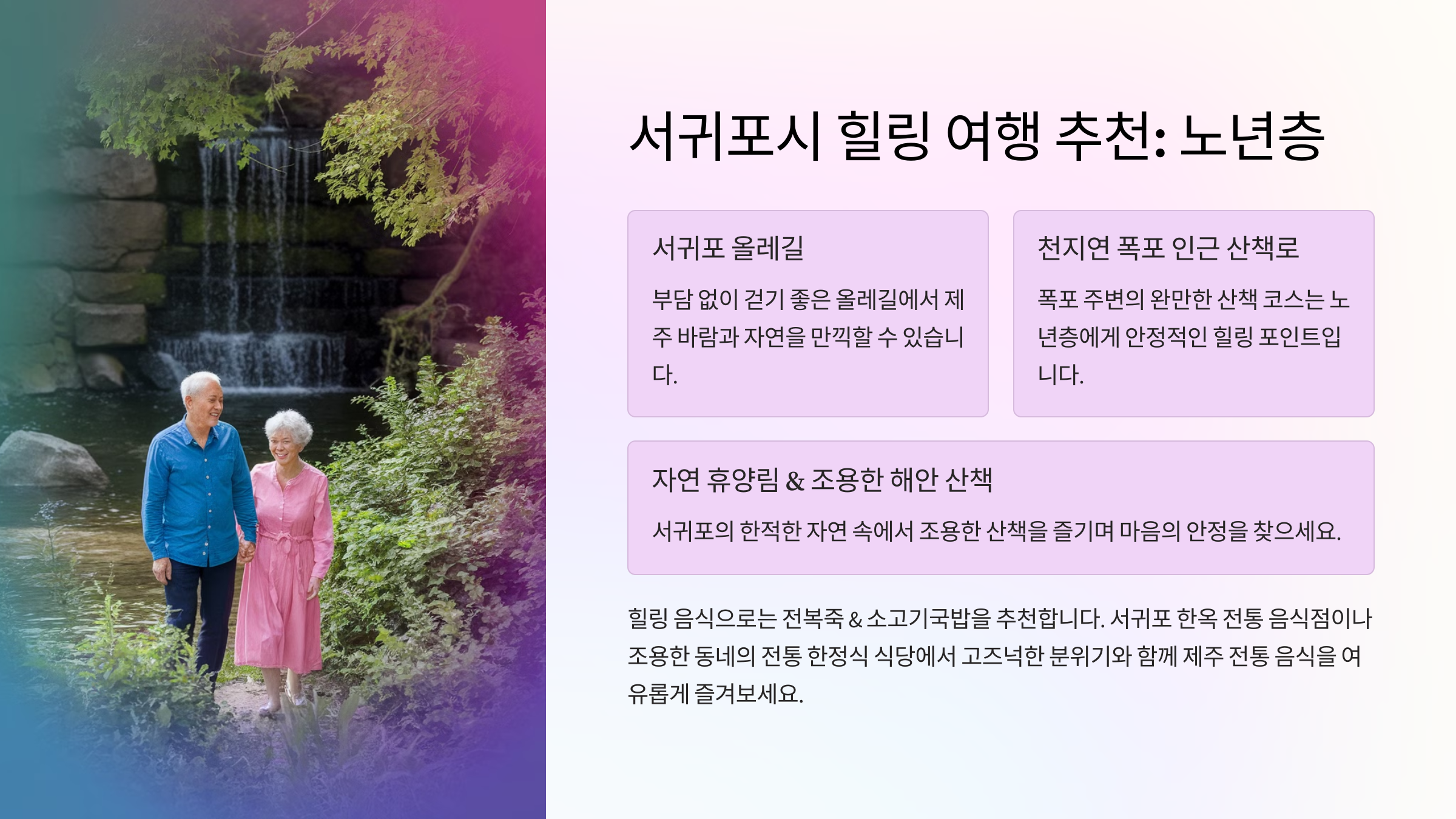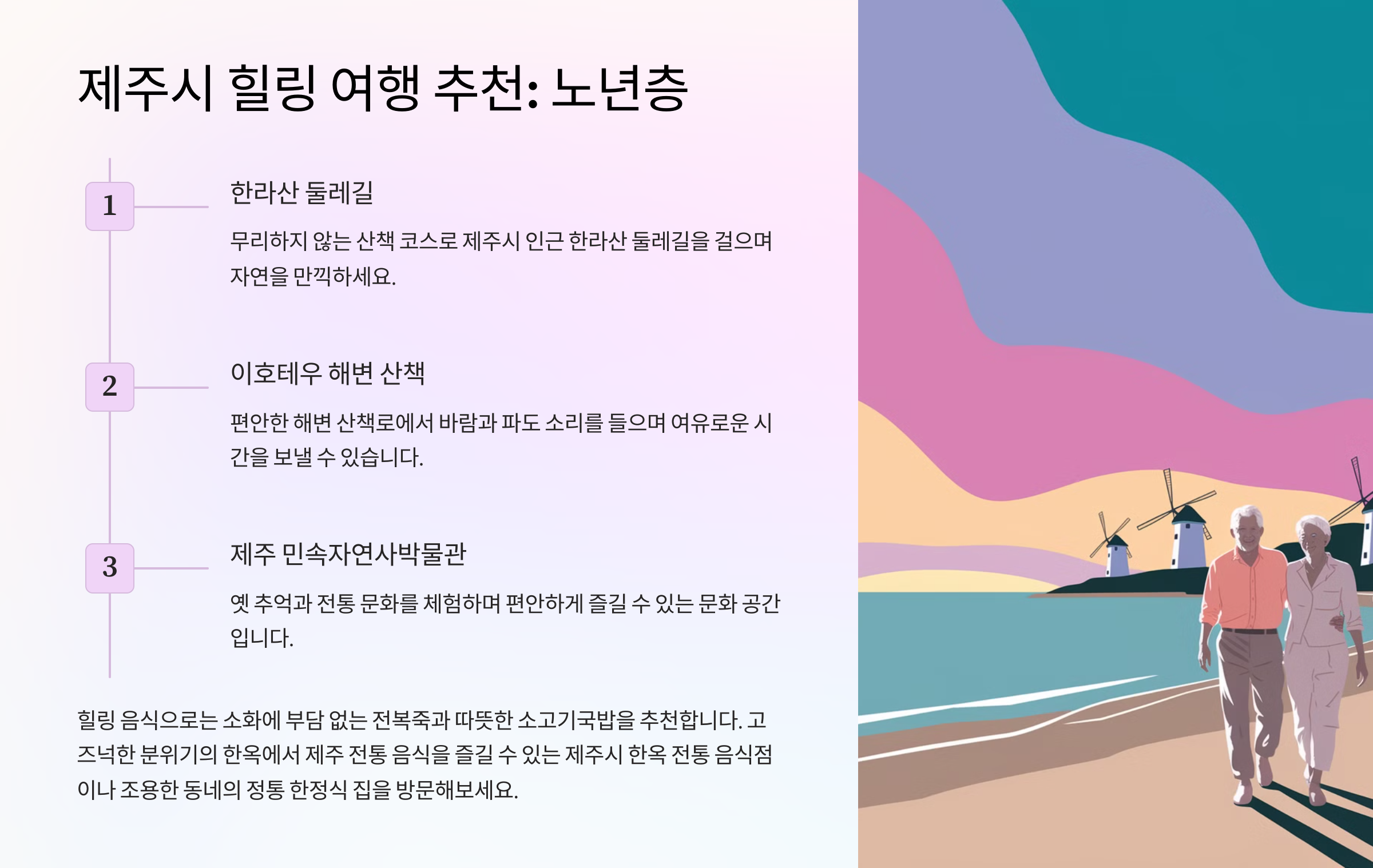 #제주도힐링여행 #제주시힐링 #서귀포힐링 #제주맛집추천 #제주전통음식 #제주카페 #올레길 #오름트래킹 #제주전복죽 #해물뚝배기 #제주감귤 #가족여행 #청춘여행 #중장년힐링 #노년층여행