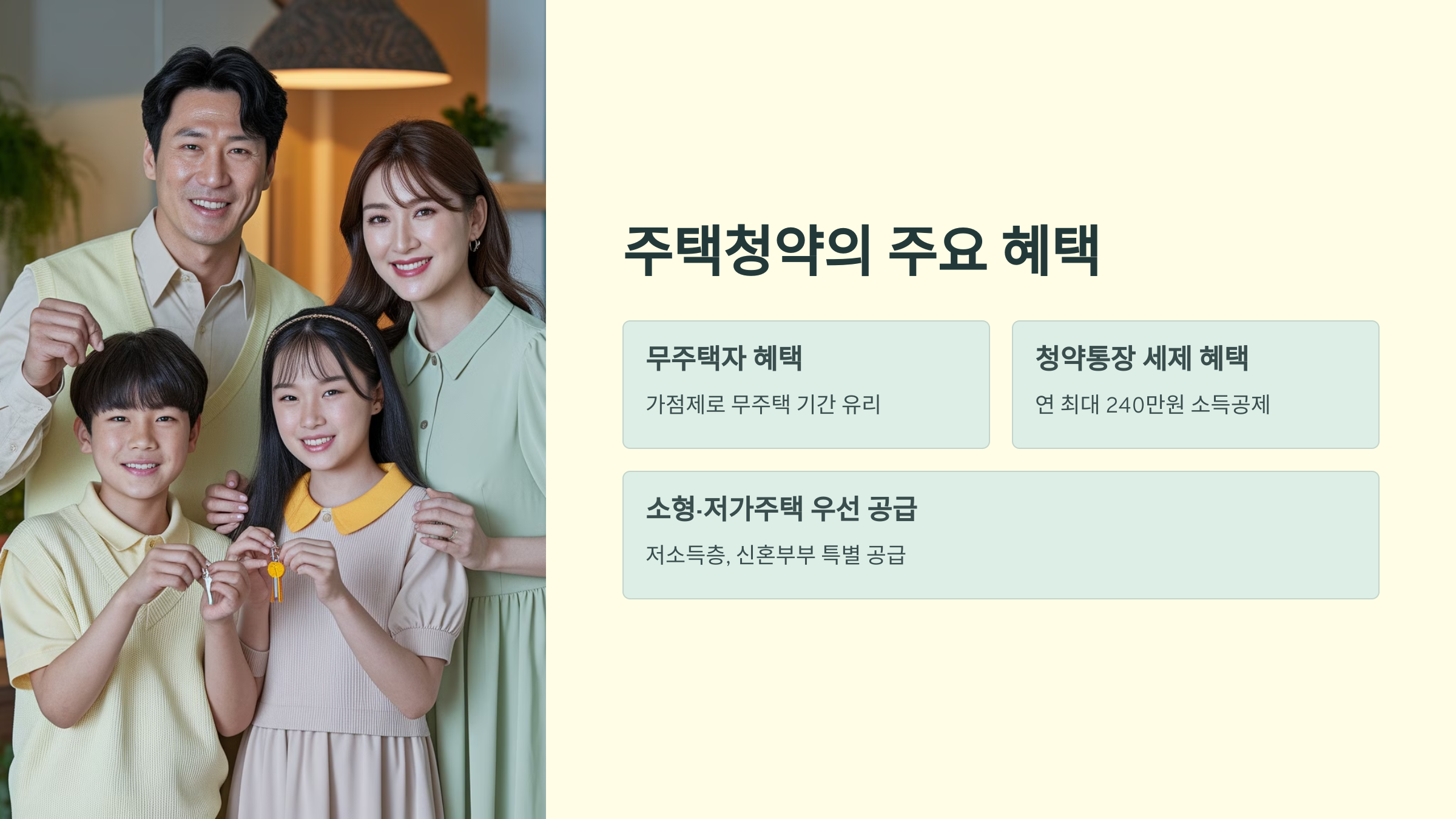 - 무주택자 혜택: 가점제를 통해 무주택 기간이 길수록 유리.