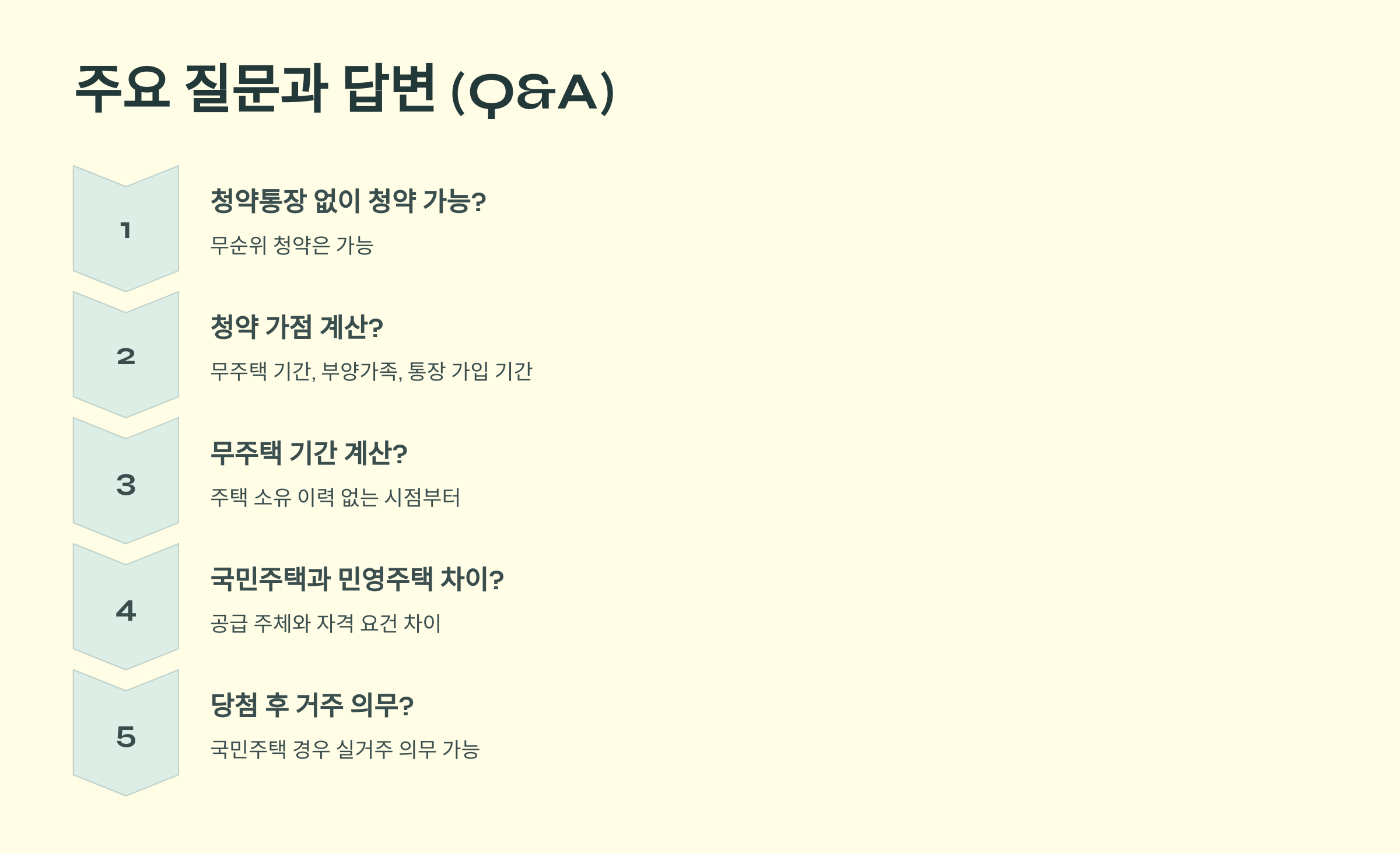 A4. 국민주택은 공공기관이 공급하며 자격 요건이 까다롭지만, 민영주택은 민간 건설사가 공급하며 자격 요건이 다소 완화됩니다.