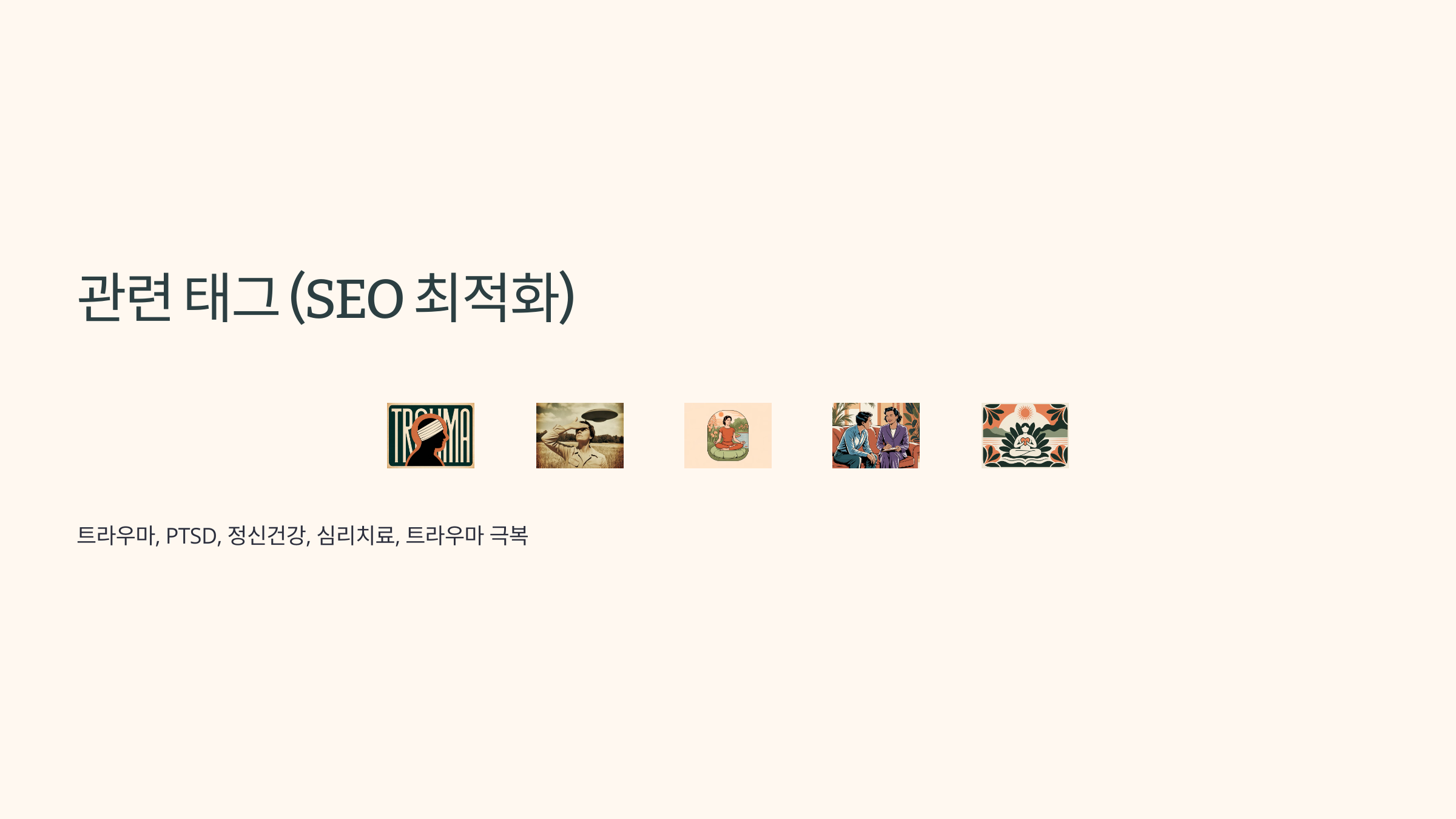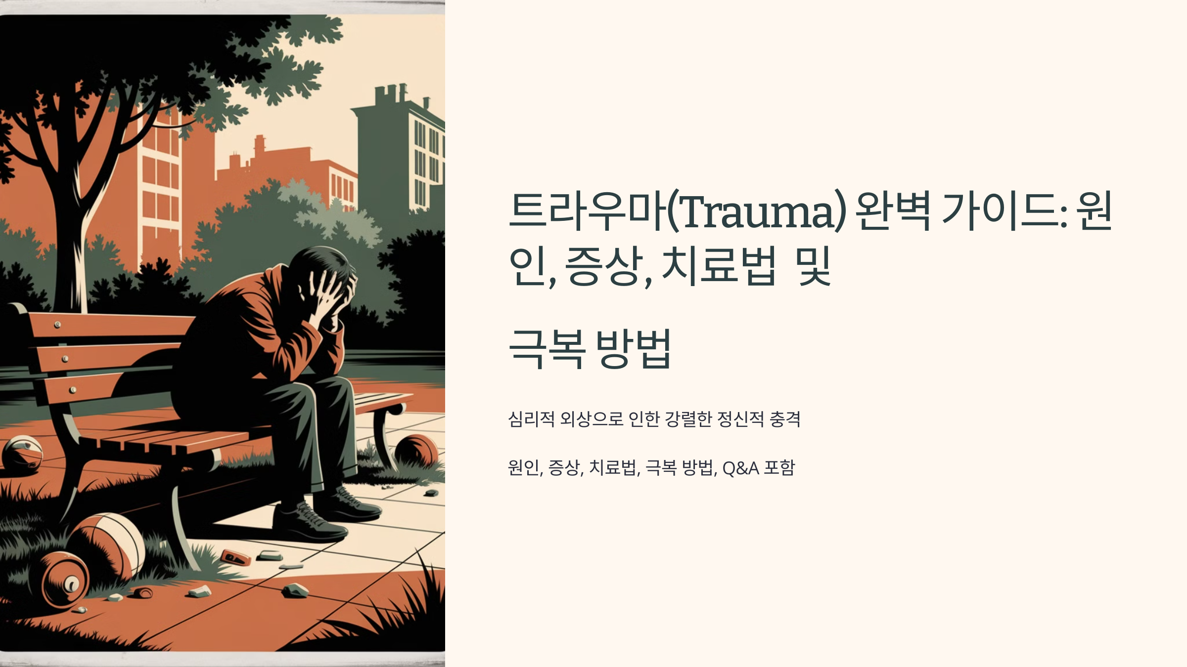 트라우마는 심리적 외상으로 인해 발생하는 강렬한 정신적 충격입니다. 본 가이드는 트라우마의 원인, 증상, 치료법, 극복 방법, 그리고 Q&A까지 포함한 SEO 최적화된 정보입니다.