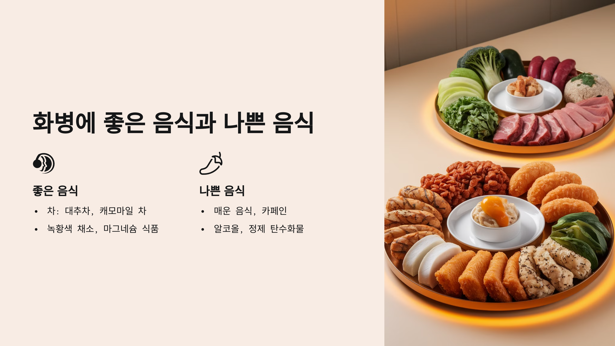🍽️ 2. 화병에 좋은 음식과 나쁜 음식